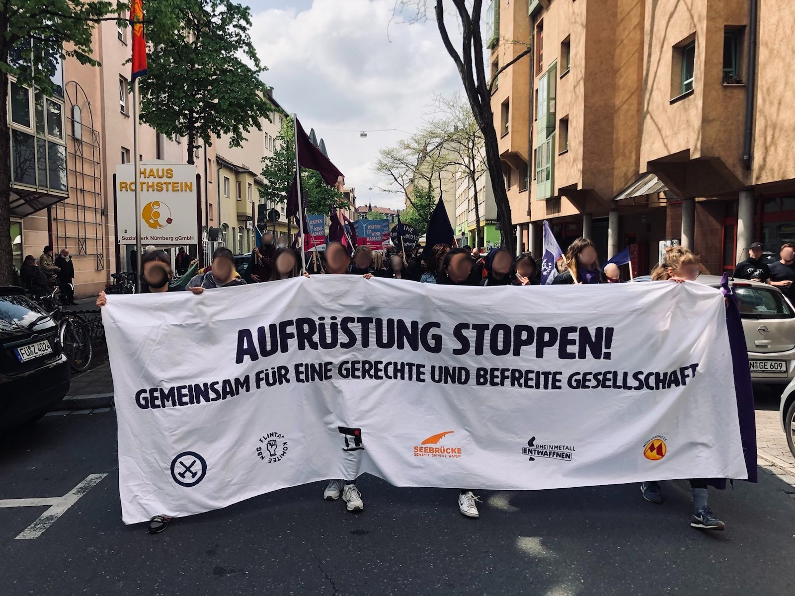 Gemeinsam mit der Klima-, der antirassistischen, der feministischen sowie der internationalistischen Bewegung bildeten wir einen antimilitaristischen Block. Dieser war laut und entschlossen und damit deutlich warhnehmbar.