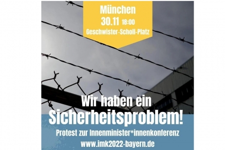 Vom 30. November bis 02. Dezember treffen sich die politisch Verantwortlichen der Polizei- und Sicherheitsbehörden im Rahmen der Innenminister*innenkonferenz in München. Auf dieser wird über die Innere Sicherheit diskutiert.
